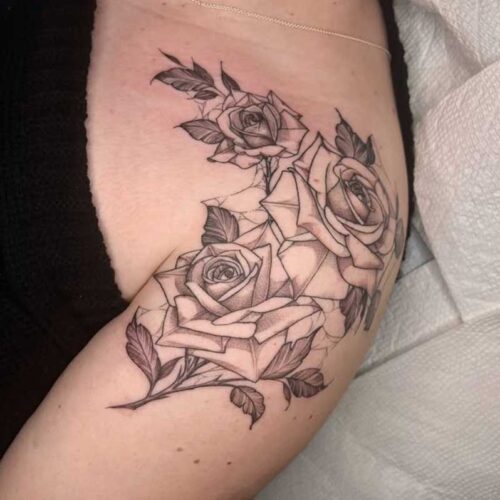 Roslyn is an amazigh artist with a focus on fineline black and grey tattoos. Roslyn’s interest in tattooing came at 12 years old when she moved to Algeria and learned about the traditional tattooing in Algeria’s amazigh culture. She is influenced by symbols from her culture as well as nature and classic art.